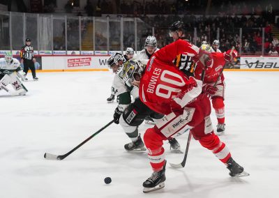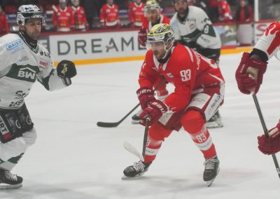 Die Steelers schienen dem dritten Treffer näher als die Roten Teufel dem Anschluss. Garret Pruden verteidigte gegen zwei Bietigheim und stoppte in allerletzter Sekunde den finalen Pass von Tyler McNeely. Und Kuhns Fanghand pflückte Fonstads gefährlichen Handgelenkschuss. Dann überwand Racuk den EC-Goalie aus kurzer Distanz und Brett Kemp setzte gegen konsternierte Gastgeber noch einen drauf – auf der LED-Anzeigetafel leuchtete nach dem zweiten Abschnitt das ernüchternde Resultat – 0:4.