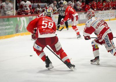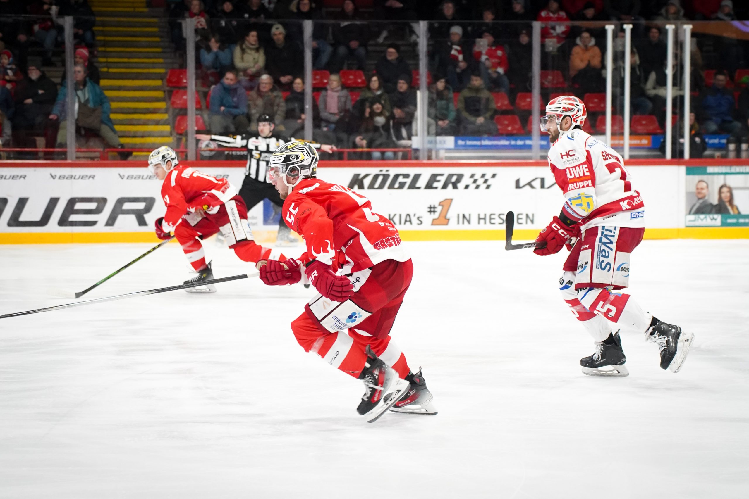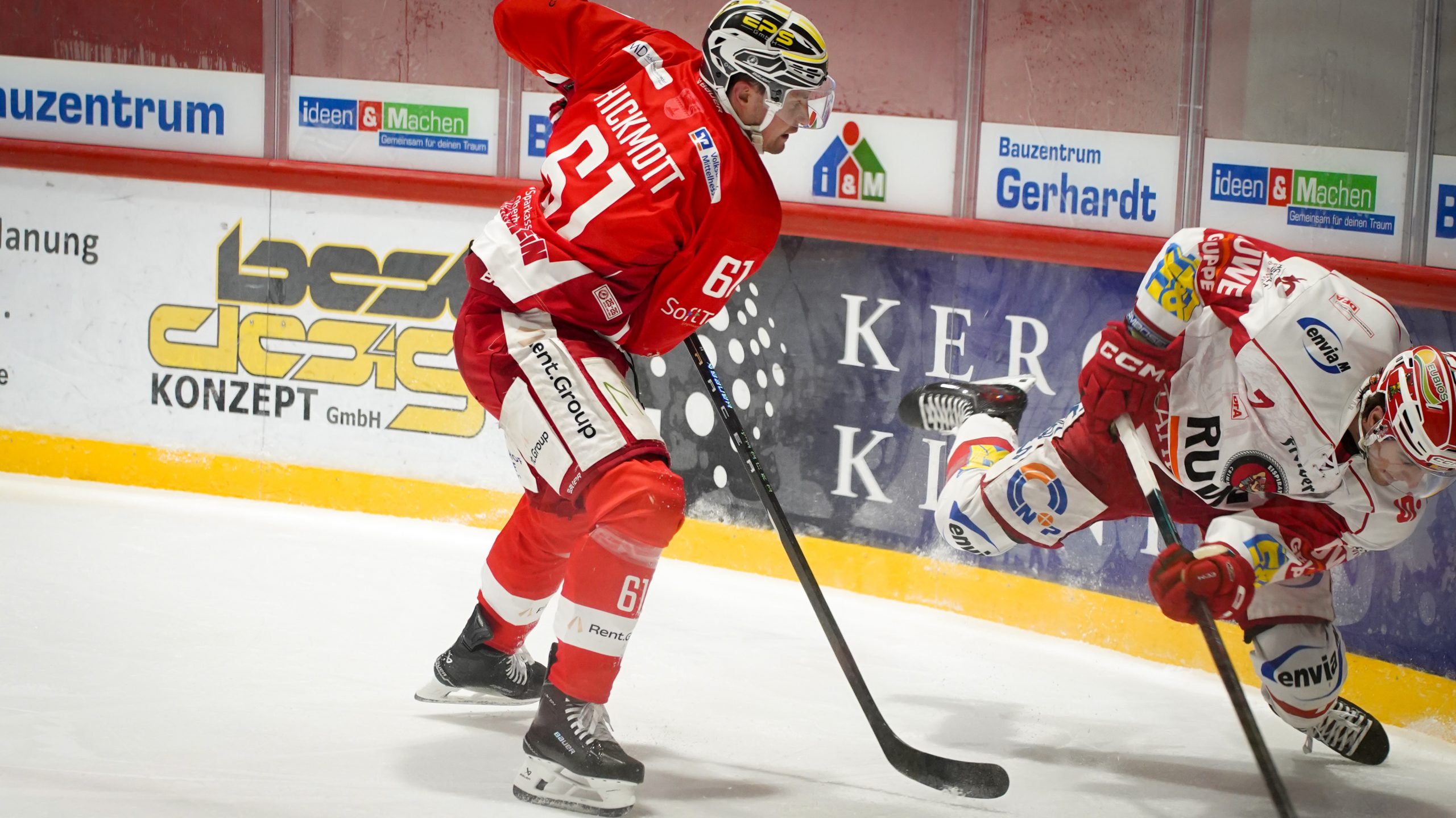 Die Roten Teufel blieben am Drücker. Gerade mal sechs Sekunden lang hatte Ex-Teufel Denis Shevyrin in der Kühlbox Platz genommen, da drehte Jordan Hickmott das Ergebnis (52.). Der Lautstärkepegel stieg noch weiter an, nachdem Justin Volek lediglich 32 Sekunden später den Doppelschlag perfekt machte.
