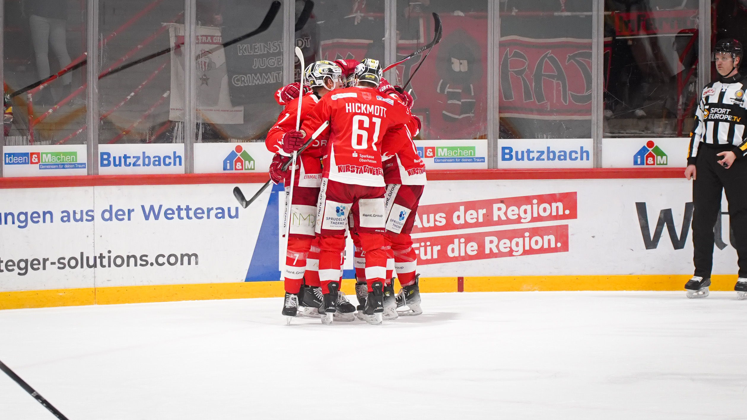 Nervöser EC-Start ins nächste „Sechs-Punkte-Spiel“. Die Gäste wirkten zu Beginn etwas spritziger, Bad Nauheim benötigte ein paar Minuten Anlaufzeit. Beide Torhüter zeigten sich von Beginn an auf dem Posten und hielten das 0:0 fest. Das änderte sich im ersten Powerplay der Roten Teufel, als Ladislav Zigmund auf der Strafbank saß. Mit einem Mann mehr agierten die Hausherren druckvoll. Dann verlor Keeper Kevin Reich im Getümmel seine Kelle und war mit geliehenem Schläger eines Mitspielers beim Führungstreffer von Sebastian Bengtsson (16.) machtlos. Mit dem knappen Vorsprung ging es in die Kabinen.