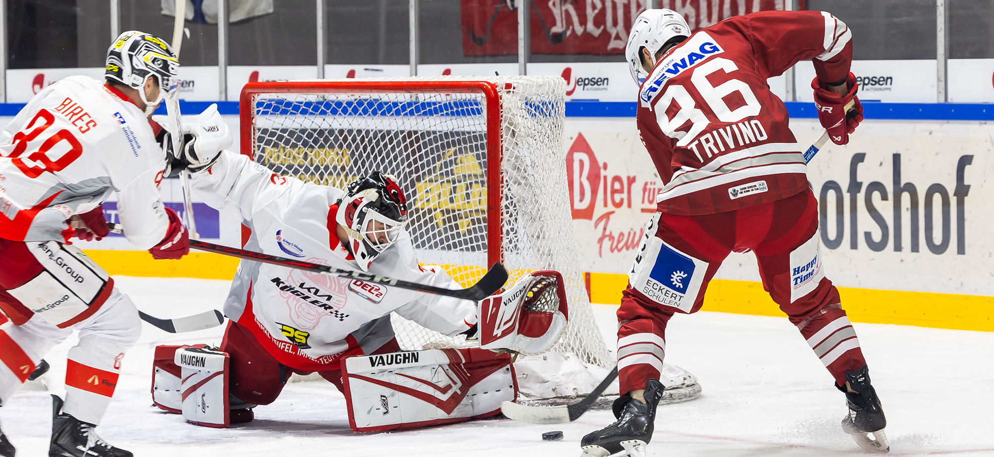 Tatsächlich entfachten die Roten Teufel mit Beginn des Mitteldrittels mehr offensiven Druck. Jonas Neffin im Tor der Regensburger bewahrte sein Team vor einem Gegentreffer ebenso wie auf der Gegenseite Jerry Kuhn. Der Routinier rettete gegen den frei stehenden Donat Peter spektakulär. Dann musste sich der EC knapp zwei Minuten in doppelter Unterzahl erwehren, weil Lukas Ribarik und Zach Kaiser kleine Strafen kassierten. Diese heikle Phase überstanden die Rot-Weißen mit viel Leidenschaft.