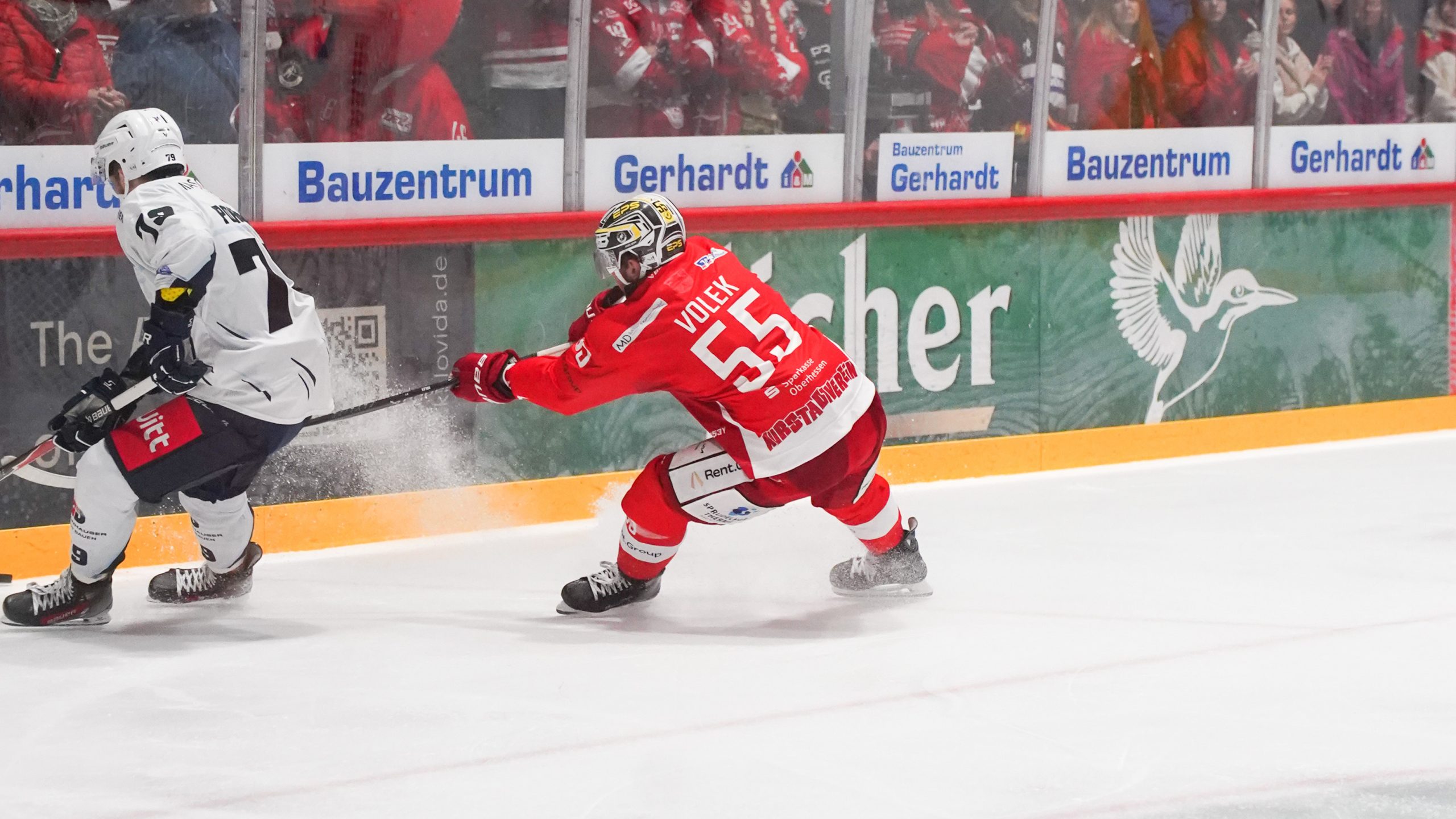 Alles wieder offen: Nach dem 4:4 durch Fabian Ribnitzky deuteten die Vorzeichen auf eine Verlängerung hin, doch 1,8 Sekunden vor der finalen Sirene fälschte Voit einen Schuss von Muck zum Siegtreffer der Gäste ab, die für ihre kämpferische Leistung mit drei Punkten belohnt wurden.