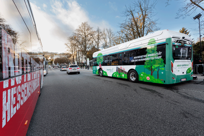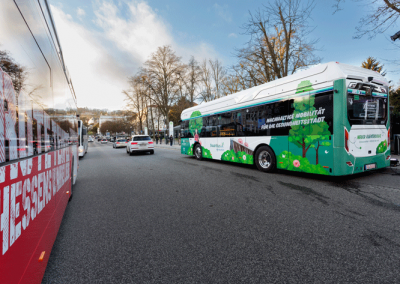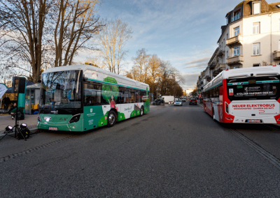 Auch im öffentlichen Nahverkehr setzt unser Platin Partner Zeichen: Auf ausgewählten Linien sind elektrische Stadtbusse im Einsatz, die Fans zumindest für einen Teil des Weges zum Stadion nutzen können.