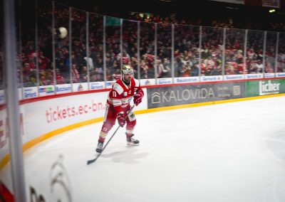 Der zweite Durchgang begann ähnlich wie der erste: Unser Team startete in Überzahl, konnte diese aber nicht nutzen. Doch die Teufel ließen sich nicht beeindrucken und blieben dran. Orendorz fuhr hinter das Tor und bediente Vause im Slot, der bereits auf die Scheibe wartete und diese cool einschoss – 3:1 (23.)!Einer Rosenheimer Überzahl hielt die EC-Abwehr souverän stand und ließ so gut wie nichts zu. Erst danach schwang sich Kuhn zum Retter auf, als er gegen Simon Gnyp (28.) und Manuel Strodel (30.) rettete. Die Bad Nauheimer setzten immer wieder Nadelstiche, die jedoch nicht von Erfolg gekrönt waren. So startete Coffman frei durch, scheiterte aber an Schlussmann Mühlberger (36.), bevor sich die Mannschaften beim Stand von 3:1 zum zweiten Pausentee begaben.