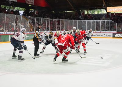 Die Roten Teufel mühten sich, konnten den jungen Nico Pertuch im Gäste-Gehäuse jedoch zu selten in Verlegenheit bringen. Justin MacPhersons abgefälschter Schuss landete am Schoner der Nummer eins, blieb aber vor der Torlinie liegen (32.). Just als Julian Lautenschlager von der Strafbank aufs Eis zurückkehrte, entwickelte sich ein Drei-auf-eins-Gegenstoß, den Justin Volek konsequent vollendete – endlich der Anschlusstreffer für die Kurstädter (38.). Doch die kalte Dusche folgte schnell: Per Rebound stellte Fabio Sarto (39.) noch vor der zweiten Sirene den alten Abstand wieder her.