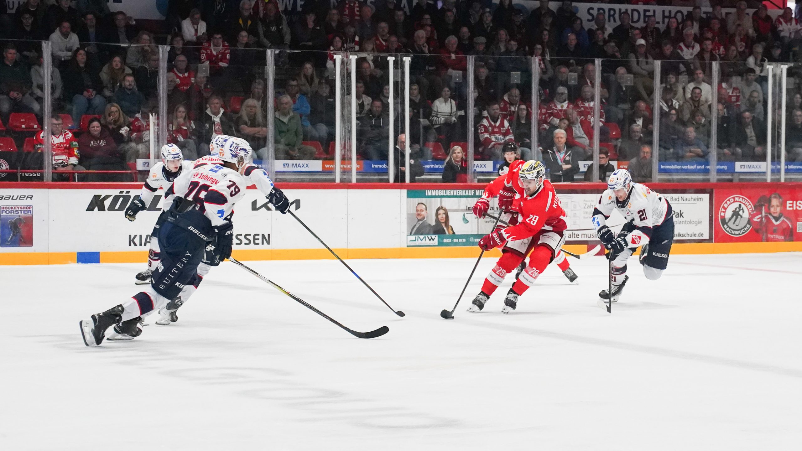 Bad Nauheim mühte sich um den Anschluss, erarbeitete sich im Schlussdurchgang die ein oder andere Gelegenheit, aber letztlich fehlte es an der Präzision. In Überzahl fasste sich Parker Bowles von der blauen Linie ein Herz, die Scheibe schlug hinter Pertuch im Netz ein und der EC war wieder im Rennen. 1:11 Minuten vor Schluss nahm Peter Russell das Timeout, doch auch mit einem Feldspieler mehr wollte der Ausgleich gegen konzentrierte Gäste nicht mehr gelingen.