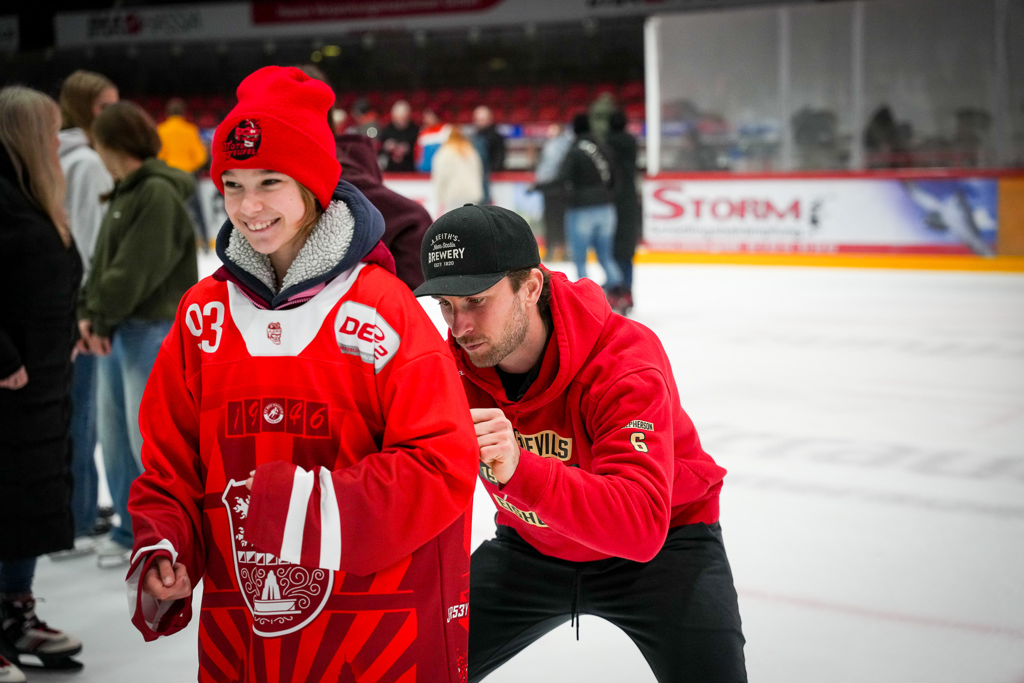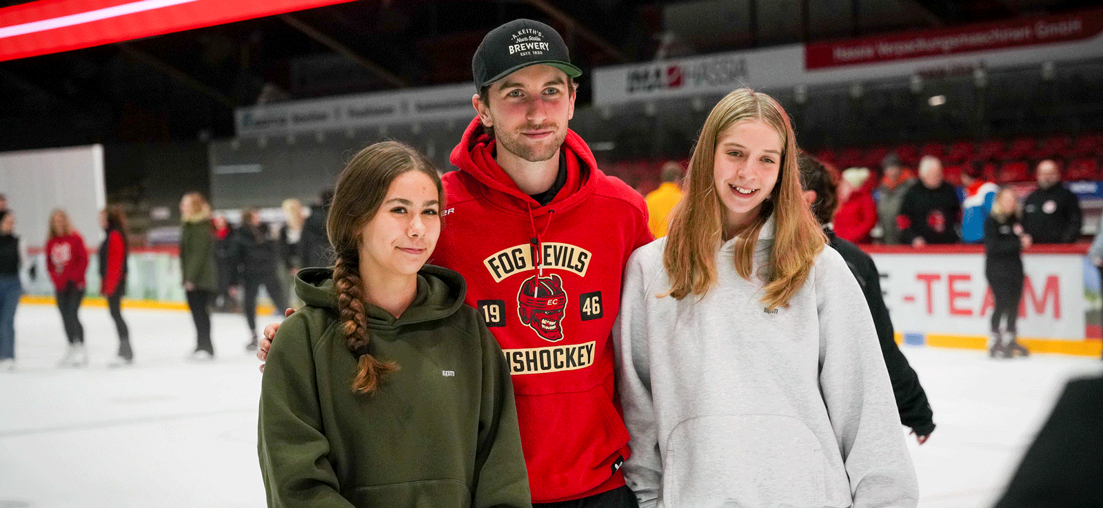 Ein Autogramm von Justin MacPherson, ein gemeinsames Foto mit Simon Gnyp, ein paar lockere Runden mit unserem Trainerteam – näher kommt man der Mannschaft kaum: Zur dritten Auflage von EC-FAMILY ON ICE haben wir am Dienstagabend wieder exklusiv unsere Dauerkarten-Inhaber eingeladen. Rund 100 Fans nutzten die Gelegenheit, um eine entspannte Stunde im Colonel-Knight-Stadion zu verbringen. Inmitten der rot-weißen Familie, mitten auf dem heimischen Eis.