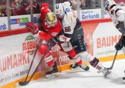 Bad Nauheim startete schwungvoll ins Schlussdrittel. Marius Erk (41./Vorlage Bengtsson) und kurz darauf Justin MacPherson und Volek verpassten den Ausgleich. Dann zischte erneut ein Erk-Schuss an Freund und Feind vorbei und landete an der Querlatte (51.). Die Zeit lief den Hausherren davon. 1:40 Minuten vor Schluss verließ Kuhn seinen Kasten, Russell nahm das Timeout. Mit einem Treffer ins verwaiste EC-Gehäuse machte Mark Rassell alles klar (59.)